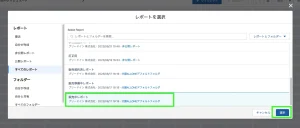 (3)レポート選択画面に移るので、任意のレポートを選択し[ 選択 ]をクリックします。