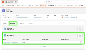 下の画像では、取引履歴タブから山田さんが関わっている物件を見ることができてますね。